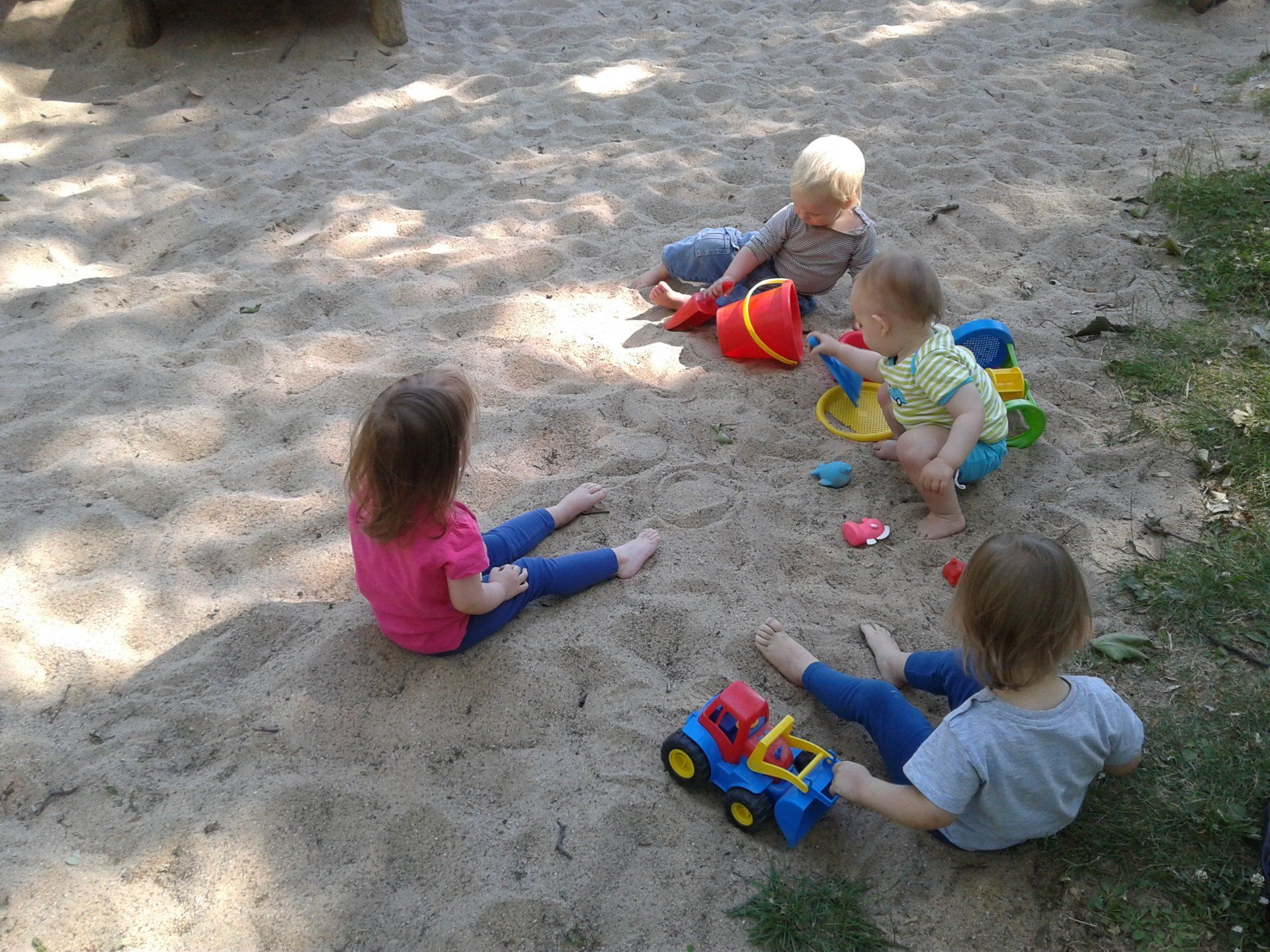 Ein Augenmerk wurde auf die Verwendung des Naturmaterials Holz gelegt, sowohl bei der Einrichtung, als auch bei der Auswahl des Spielzeugs .